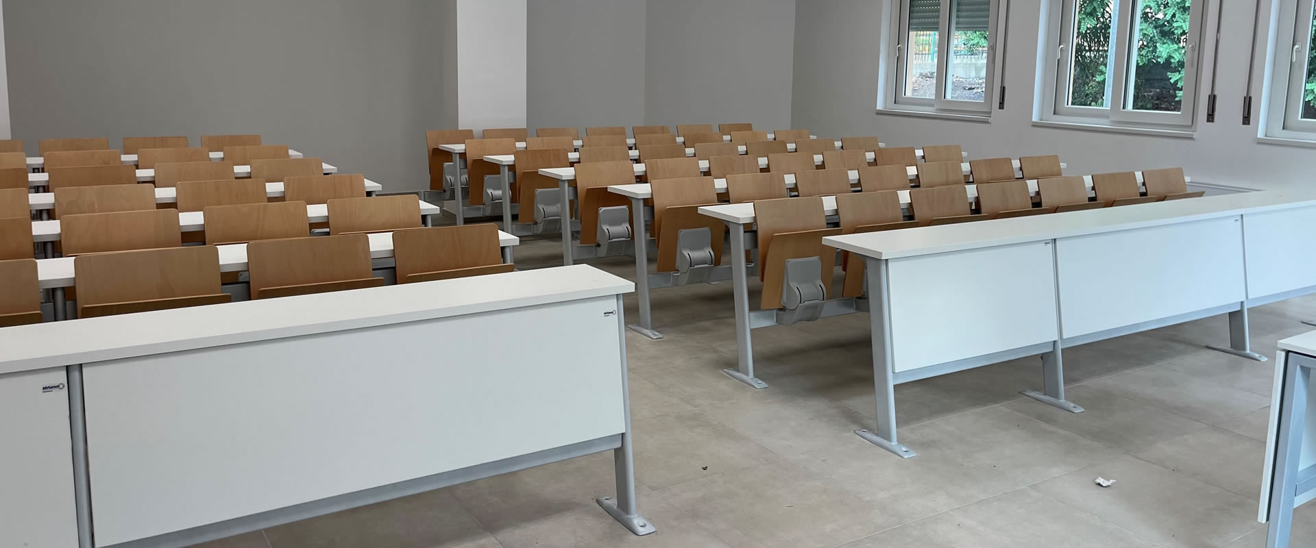 Sirianni Università è la linea di prodotti destinata ad arredare le Aule Universitarie ed i grandi spazi collettivi. I banchi e le sedute sono interamente progettati e realizzati all’interno dell’Azienda, con l’ausilio e la consulenza fondamentale di esperti nazionali ed internazionali del settore: rispettano i principi ergonomici ed antropometrici dettati dalle Normative Europee (EN) ed Internazionali (ISO). Il valore dei prodotti è garantito da un rigoroso controllo sui sistemi di gestione, dall’acquisto della materia prima, esclusivamente italiana, alle lavorazioni del metallo e del legno, fino alla verniciatura, al packaging ed alla spedizione.